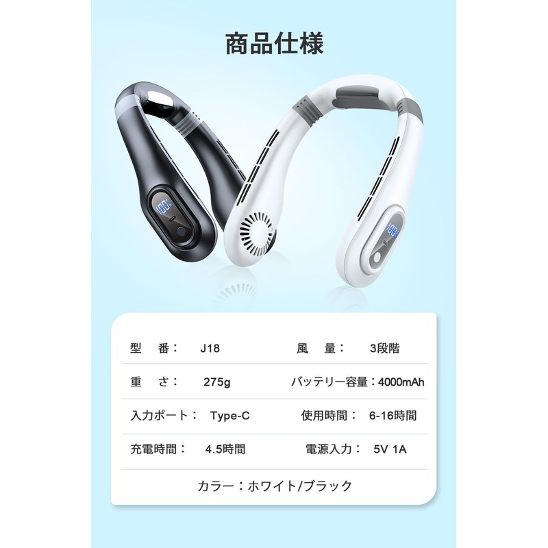 - Large capacity battery for long duration: This neck fan is equipped with a 4,000 mAh high capacity battery that can be used continuously for up to 16 hours. No need to worry about running out of battery even when you use it all day, and you can rest assured that you can use it outdoors or long events. In addition, it supports Type-C rapid charging, allowing you to fully charge it in a short time. Combining the convenience of a portable fan and comfort of a neck cooler, this product will continue to provide reliability for long periods of use. Stay cool and comfortable no matter where you are, supporting your active lifestyle