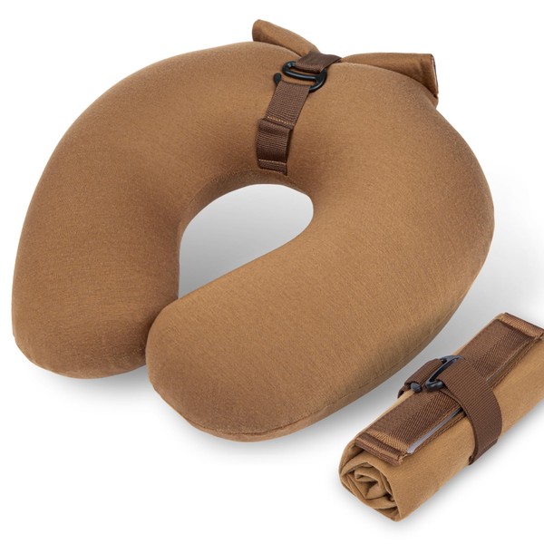 Neck Pillow Airplane, neck pillow for traveling, Neck Support Sleeping Essentials, Single-Breath Inflation Portable Inflatable Travel Pillow, For Long Flight, Airplanes, Traveling, Car (Brown)