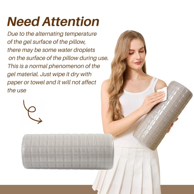 - Notice: Due to the characteristics of the gel material, there may be some water droplets on the outer layer of the cooling gel. This is a normal phenomenon and can be wiped dry with a rag. It does not affect the use. For a better experience, it is recommended to use it with a cloth cover.
