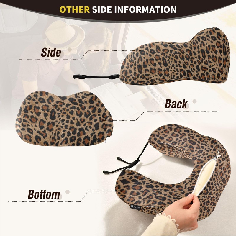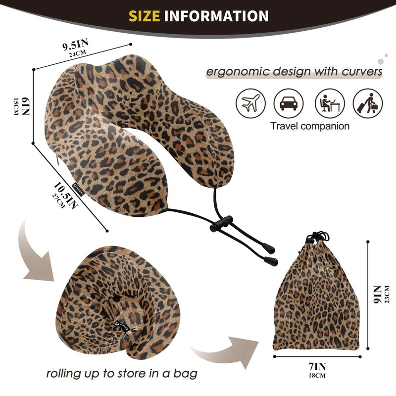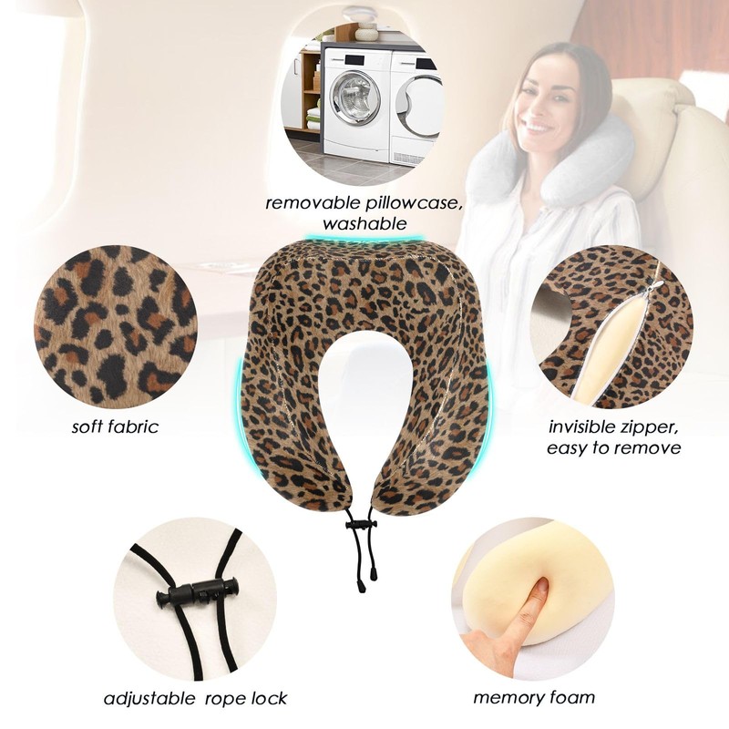 Neck Travel Pillow for Sleeping Airplanes Memory Foam Portable Cheetah Leopard Print Animal Soft Washable Cover Neck Support Pillows