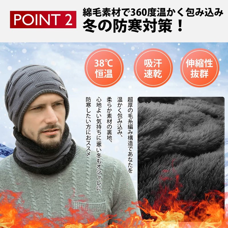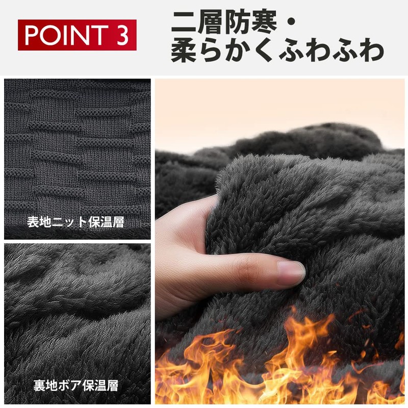 Neck Warmer, Knit Hat, Set of 2, 11.8°F (38°C), Constant Temperature, Pilling Grade 3, Double Layer, Fleece Lined, Cold Protection, Maximum Heat Retention, Beanie, Cap, Sweat Absorbent, Quick Drying, Soft, Stretchy, For Bicycles, Motorcycles, Commuting t