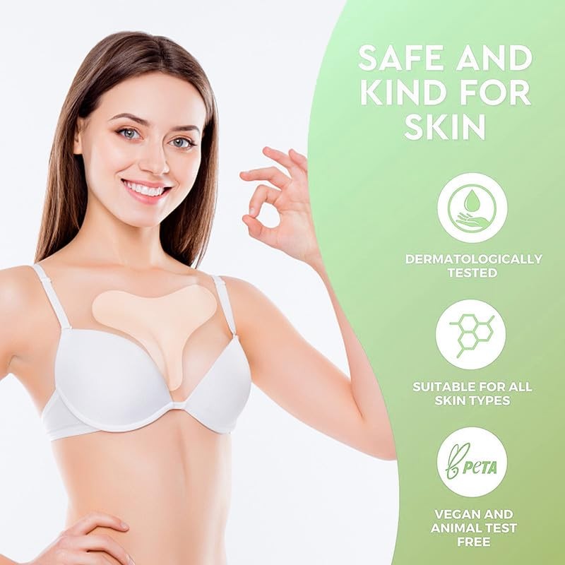 - REJUVENATE YOUR DECOLLETE: Applying our adhesive silicone decolletage & neck pads to the desired areas helps increase blood circulation, stimulate collagen production and lead to improved skin elasticity and firmer, smoother skin.Tip: When using chest stickers, please lie on your back as much as possible. Lying on your back allows your skin to come into contact with a larger area of chest stickers and neck stickers, and the effect is better.