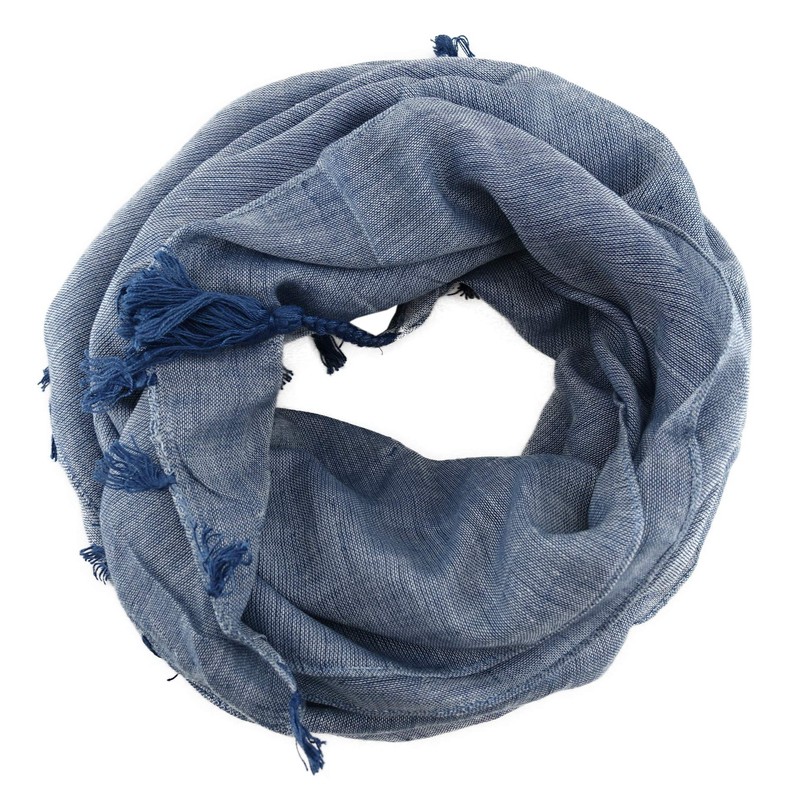 Neckerchief Blue Plain Fringes and Tussels on the Corners Size 100 x 100 cm, blue