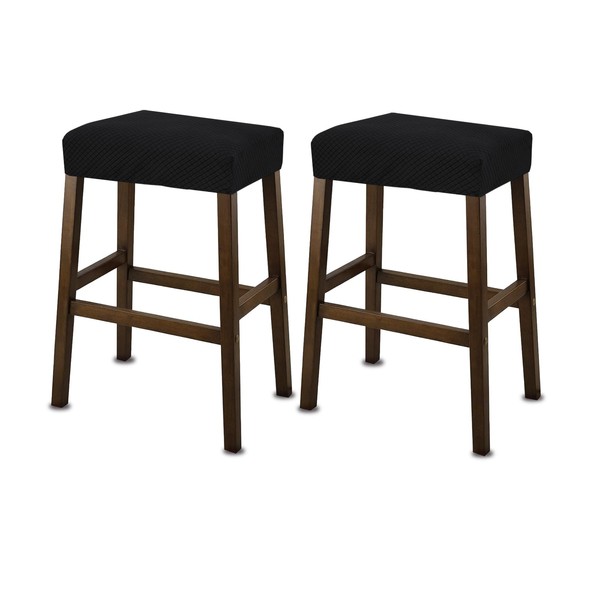 NeColorLife Rectangle Bar Stool Covers,Stretch Waterproof Saddle Seat Covers for Counter Height and Kitchen Island Chairs,Vanity Barstool Cushion Protector,Black,Pattern A,2 Pack