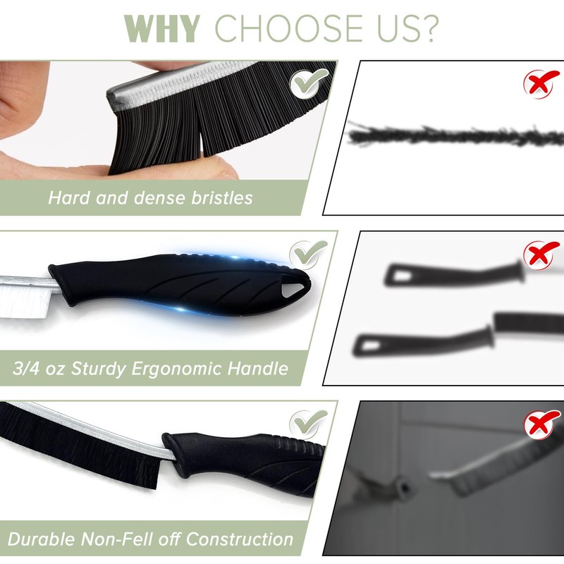 - 🧽【Flat Brush Head Design】The brush adopts a flat brush head design, and the thick and long bristles can effectively remove dust, debris, and dirt in narrow spaces.Easy access to crevices, cracks, corners, and hard to reach areas, thoroughly cleaning every place.