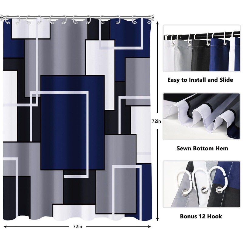 - Waterproof and Durable: Made from skin-friendly polyester fabric, the blue geometric shower curtains for bathroom is both soft and durable. The front and back of the fabric shower curtain are treated with waterproofing to repel water and dry quickly, keeping your bathroom clean and dry.