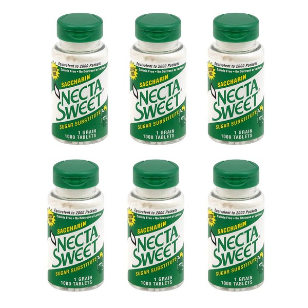 Necta Sweet 1-Grain Saccharin Tablets - Zero-Calorie Sugar Substitutes (6-Pack 1,000-Tablet Bottle)