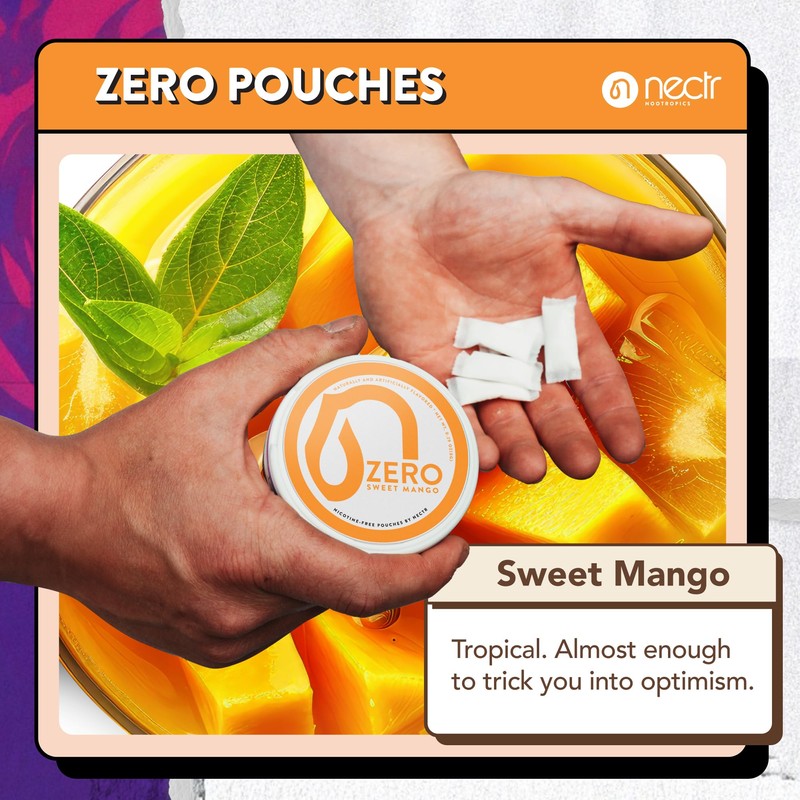 - SWEET MANGO: Tropical, juicy, and dangerously smooth—like focus in vacation mode. This flavor-forward pouch delivers sun-ripened sweetness with a subtle snap of clarity.