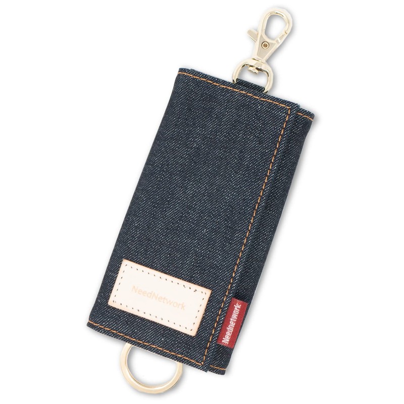 Need Network Men's Key Case, 6 Hooks, Okayama Denim, Smart Key Case, Carabiner, Indigo Blue, blue