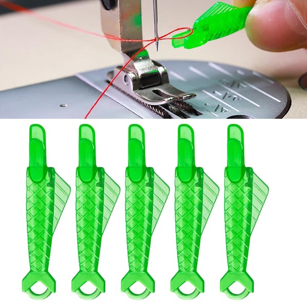Needle Threader, Alluring Needle Threader for Sewing Machines, Threading Aid, Sewing Machine Accessories, Green Plastic Fish for Hand Sewing and Sewing Machines (5 Pieces)