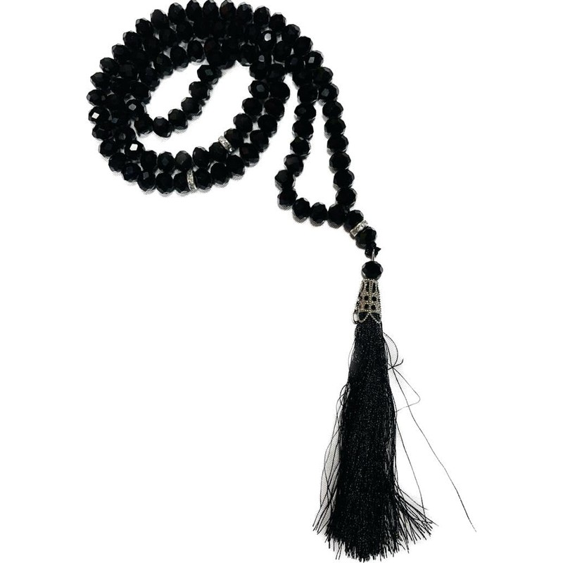Needs & Wants® Islamic Tassel Tasbih Crystal 99 Prayer Beads Eid Gift For Zikr And Dua Prayers (BLACK)