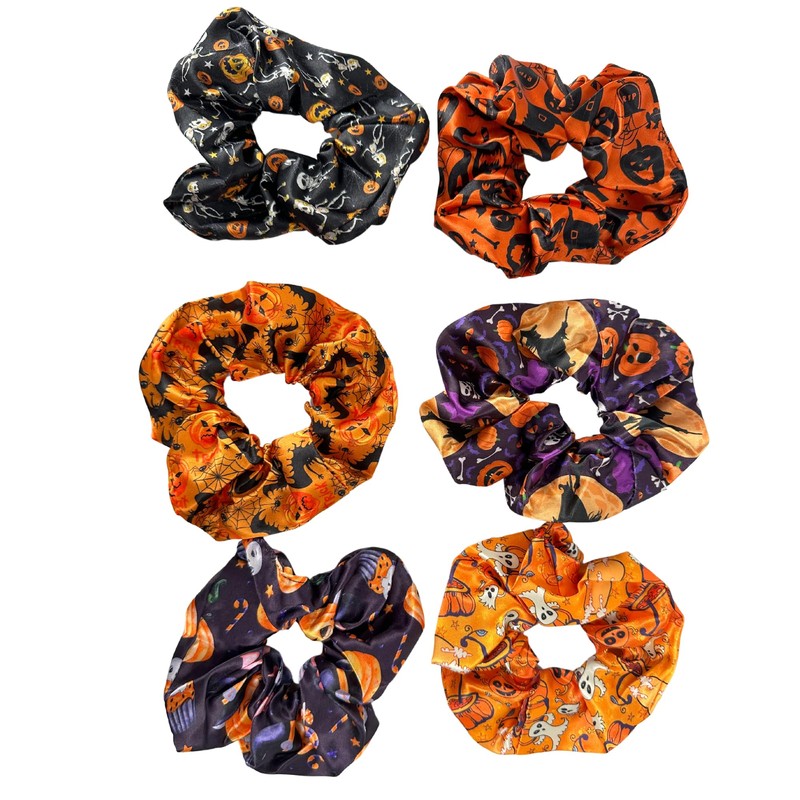 Needzo Halloween Hair Scrunchies, Soft and Stretchy Elastic, Pumpkins, Ghosts and Skeleton Styles, 4.5 Inches