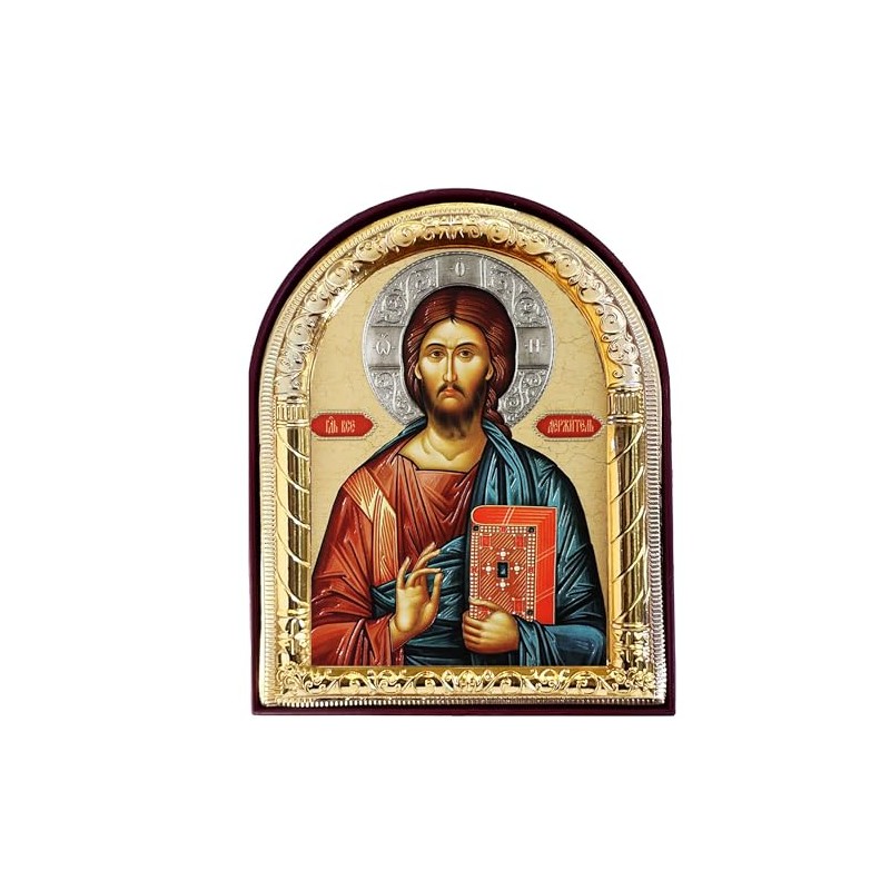 Needzo Icon of Jesus Christ The Teacher Russian Orthodox Catholic Icon 4 1/16 Inch, Gold Foil Arched