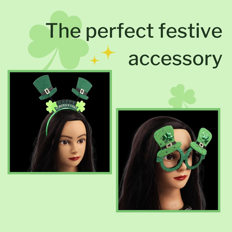 - St. Patrick’s top hat bopper headband and glasses in a pack of 2