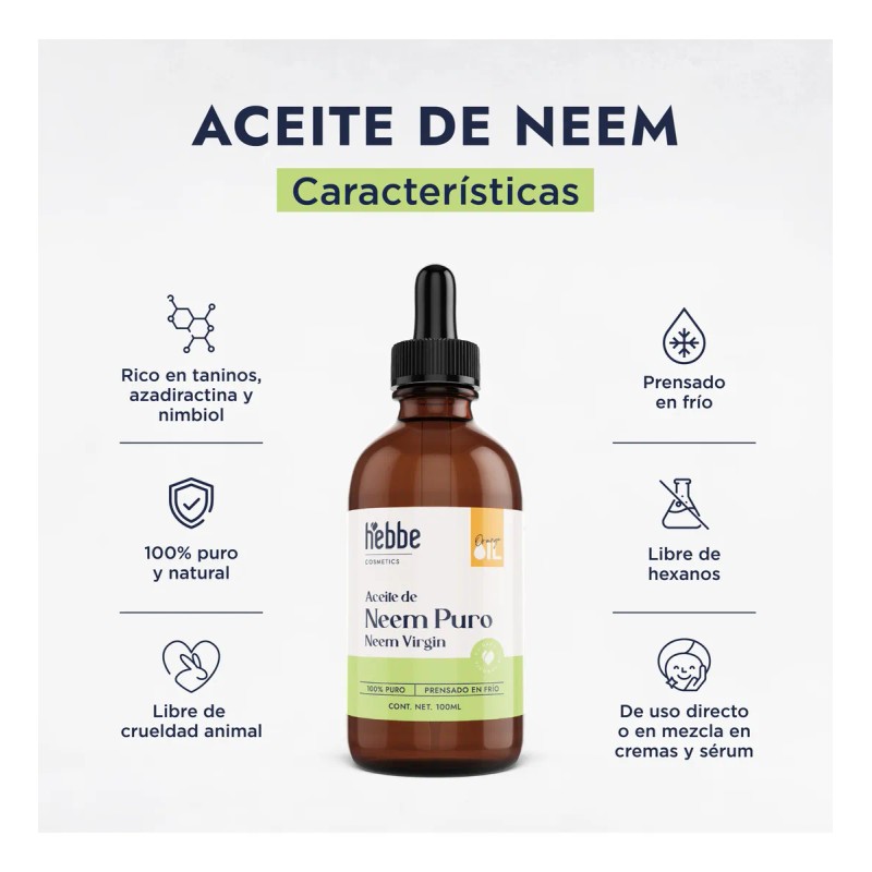 Neem Aceite Puro Orgánico Prensado en Frío Facial y Capilar, Hebbe 100ml
