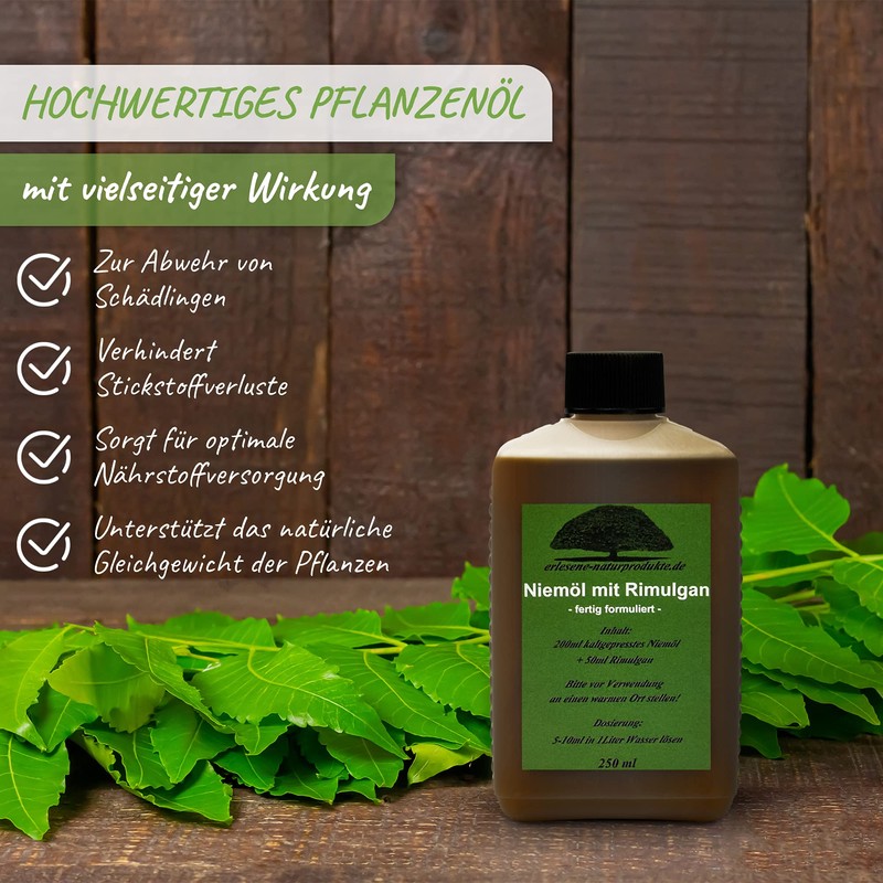 • Ready to use: for immediate use, the neem oil and the rimulgan (emulsifier) is already mixed. The high-quality vegetable oil is ready to use