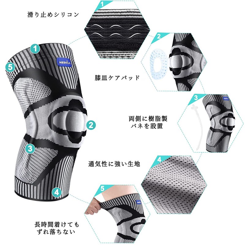 - ✅NEENCA 膝サポーター:特許取得、「膝蓋骨ゲルパッド」と「サイドバネ(2本)」を設置しております。膝関節に安定させ、痛みを軽減できます。両側のサポート力を増強し、靭帯の損傷を予防します。膝の負担を分散させる一方、膝の動きを影響ありません。