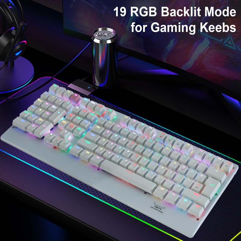 - Light Up Keyboard: Simply press (FN+) to switch backlit effects between each other. It is easy to control light brightness and speed, so that you will make a custom keyboard. The south-facing RGB LED is designed to better illuminate the keyboard backlight from the typist’s angle. It also avoids the interference when the user install popular cherry profile keycaps. The stabilizers that come with this keyboard are refinedly tuned to prevent rattling on large keys like spacebars and modifiers