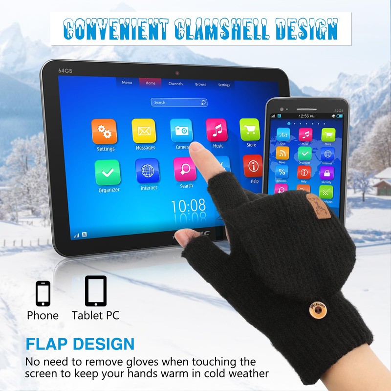 - Practical flap design: thermal half finger mittens for women are equipped with covers, the convertible flaps cover allows you to show your finger, you can rotate the cover and fix the button, then you can write or handle your phone and text freely without the need to take off the whole gloves, convenient for work and study while still providing warmth