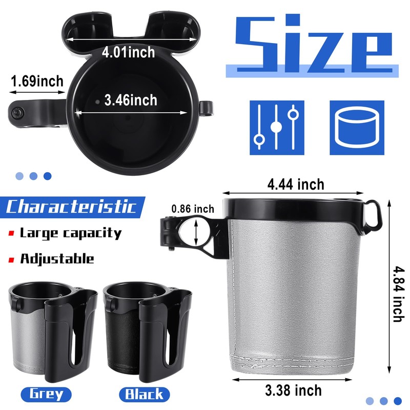 - Versatile Compatibility: with a common design and classic colors of black and grey, the bicycle cup holders fit most bikes, scooters, walkers, boats and more, making them suitable for boating, walking, cycling and more