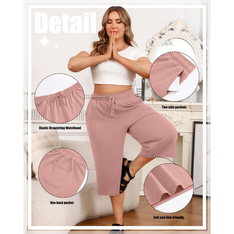 Neer 3 Pack Women's Capri Pants Plus Size Wide Leg Cropped Yoga Pants with Pocket Drawstring Loose Capris Summer Sweatpants(Black, Light Gray, Pink,3X-Large)