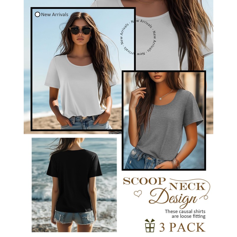 - Package Includes: you will receive 3 pack of women's loose fit t shirts in different classic solid colors for daily replacement, our scoop neck tops for women offers loose fit, suitable for workout or lounge wear