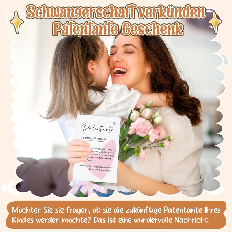 Das Set bietet eine persönliche Note mit der Möglichkeit, eine individuelle Nachricht auf der Karte hinzuzufügen. Gestalten Sie das Geschenk noch persönlicher und zeigen Sie der Patin, wie wichtig sie für Sie ist.