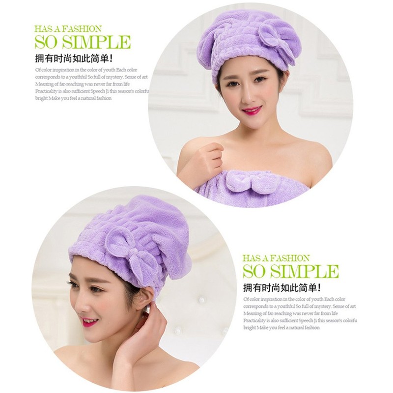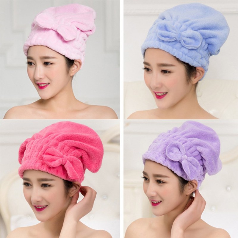 NEEVAS Lovely Bowknot Hair Turban Quickly Dry Hair Hat Towel Head Wrap Shower Cap for Bath Spa (Pink)