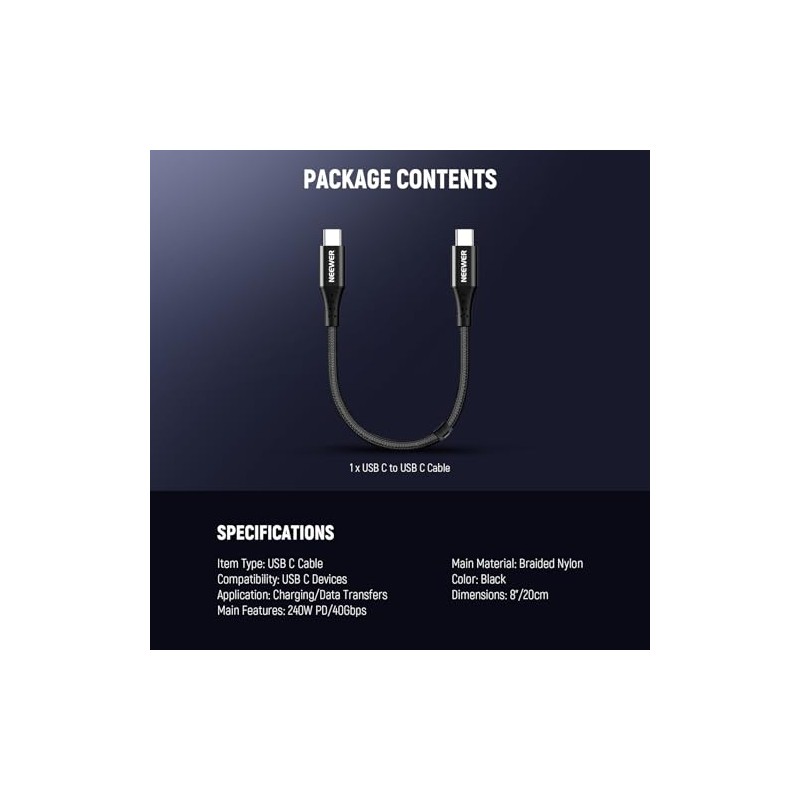 Neewer 8"/20cm USB C to USB C Cable, USB 3.2 240W PD3.0 Fast Charging 40Gbps Braided Short Charger Cord Compatible with iPhone 16 15 iPad MacBook Android Window Laptop PC, PS009 | Neewer