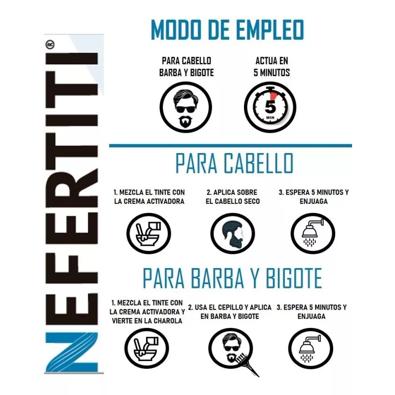 Nefertiti Kit For Men Tinte Colorante En Gel Cabello Y Barba Tono Castaño Oscuro