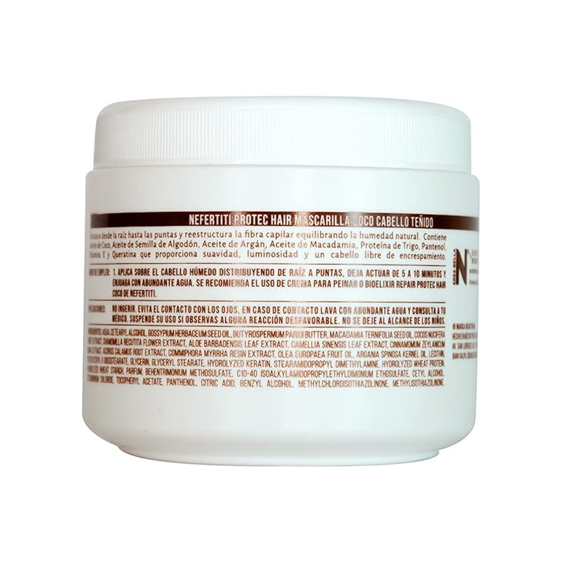 ¡Restaura a profundidad tu cabello! Mascarilla Protec Hair Coco de Nefertiti es ideal para cabello teñido. Contiene Aceite de Coco, Macadamia, Queratina y Semilla de Algodón que restauran desde la raíz y reestructuran la fibra capilar equilibrando la humedad y vitalidad natural. Brinda sedosidad, luminosidad y un cabello libre de encrespamiento.