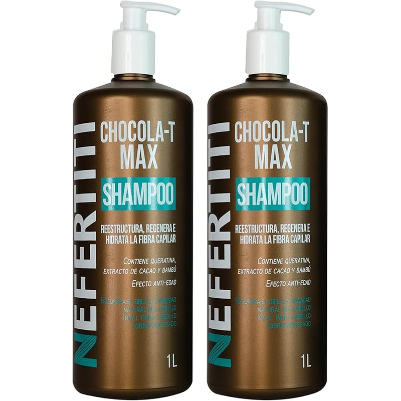 - ¡Brillo y suavidad renovados con Chocola-T Max de Nefertiti! Efecto anti-edad: Nuestro Shampoo Chocola-T Max reestructura y regenera la fibra capilar, devolviéndole la juventud a tu cabello.
