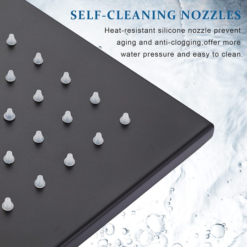 - Features: When you are taking a shower, the extra large rainfall shower will cover your entire body. The shower head is made of silicone, making it easier to remove sediments.