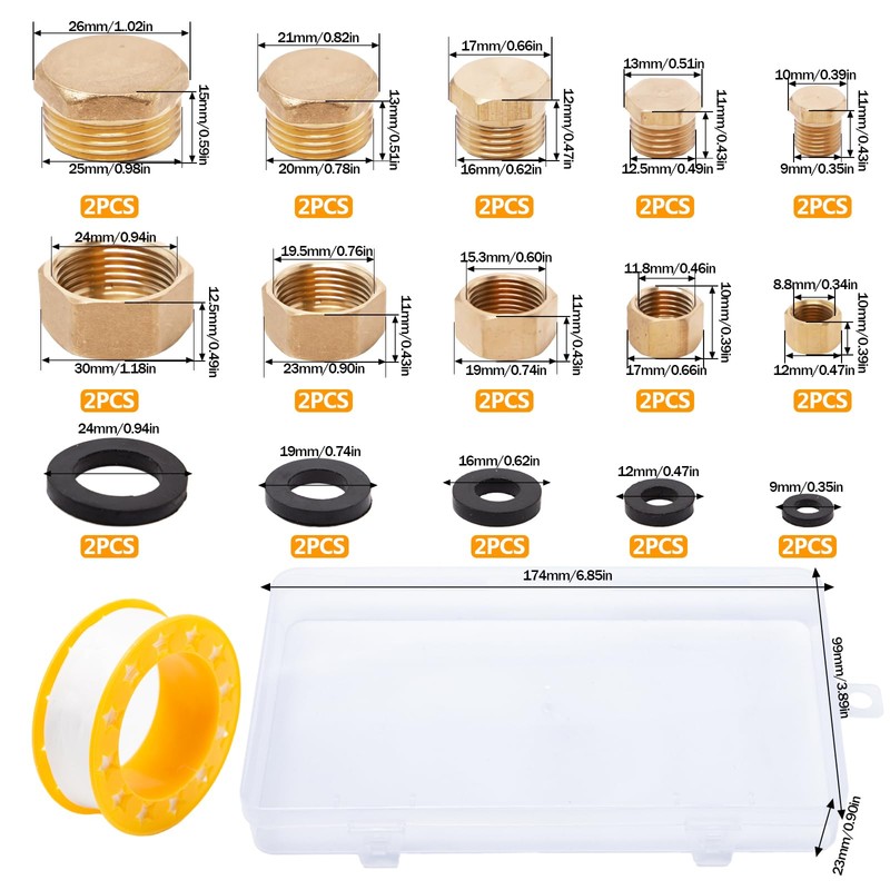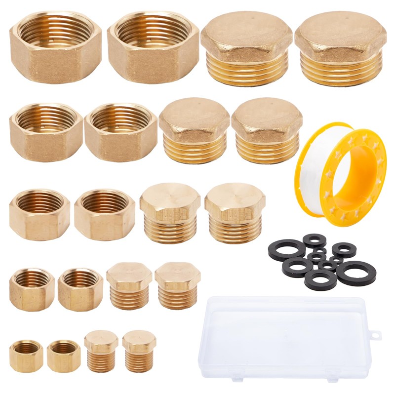 - Package includes: you will receive 20 pieces blind plugs water pipe, contains internal and external thread, sizes: 1/8 inch, 1/4 inch, 3/8 inch, 1/2 inch and 3/4 inch, 2 pieces of each size with raw material band.