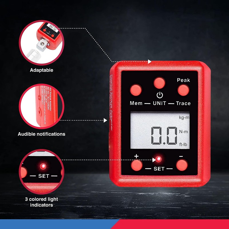 • METRIC/SAE & BI-DIRECTIONAL: This digital adapter can calculate torque at both metric and SAE units (Ft.-Lb., N-m and kg-m) and bolsters a 3/4-inch drive with socket drive and can measure in both directions, clockwise and counter-clockwise.