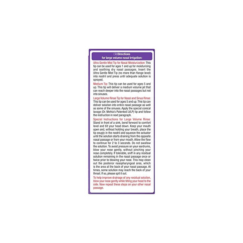 Soothe, moisturize and cleanse using three specially designed nozzles. 3 Specially Designed Nozzles are available to deliver the finest and most gentle mist for nasal application Nasal Allergies and Dryness Sinusitis, Rhinitis Sinus Pressure & Nasal Congestion