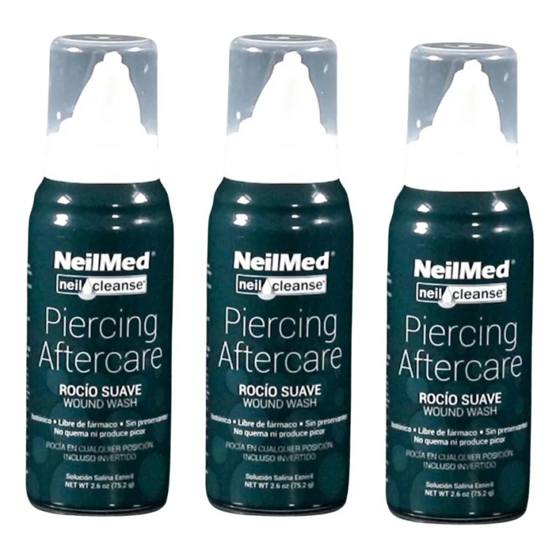 neilmed piercing aftercare, kit cuidado piercing, productos para cicatrización piercing, limpieza segura piercing, tratamiento post piercing, cuidado antiinfecciones piercing.