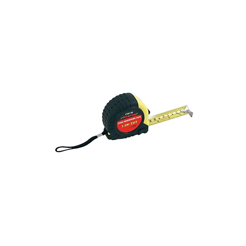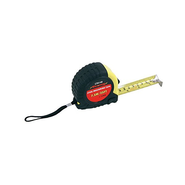 - 7.5m / 25ft with 25mm blade rubber and plastic body positive thumb lock high-impact-resistant abs safety case. 2-rivet sliding end hook for inside and outside measurements. Best quality rubber covered case measure tape. Easy to lock and release