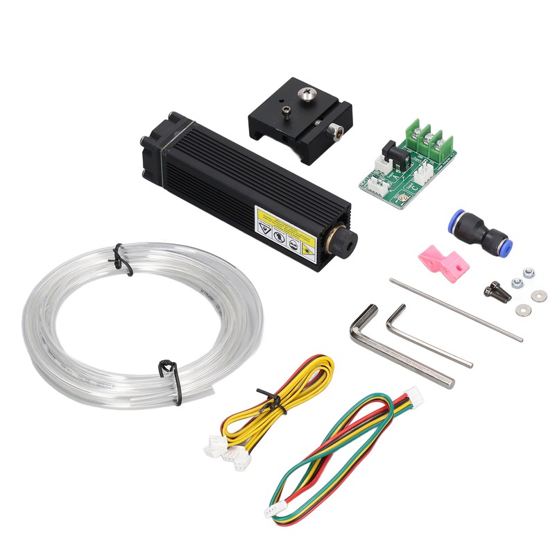 1、High Working Performance: The output power of this engraving module is 5.5W, can cut 3mm thick plywood cleanly at one time, with for NEJE Plus, the engraving speed can up to 1000mm per second, has high efficiency 2、Wide Compatibility: Widely compatible with other brands of engraving machines, 3D printers and CNC router machines, the corresponding application interface requires 3.3‑12V voltage, 1‑100% duty cycle, 0‑20kHz frequency 3、Intelligent Adjustment: Built in fast intelligent drive and double ball bearing high speed cooling fan, timely detect temperature, intelligent adjust the fan, feature good heat dissipation performance, and low noise operation 4、Easy Installation and Operation: The engraving module can be secured with spring clips without any screws, easy to install on the machine and to operate 5、Wide Range of Usage: Can engrave wood, MDF, leather, paper, cotton, etc. and can engrave stainless steel, glass, transparent acrylic after spraying, you can use for DIY commercial sign, greeting card, mini model, engraving children drawing