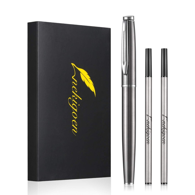 nekigoen Rollerball Pen Fine Point Gel Black Ink Smooth Writing,Luxury Rollerball Pen with Chrome Finish Fancy Pen Gift Set for Executive Business Office School,Professional,Executive Pen G3 (Silver)