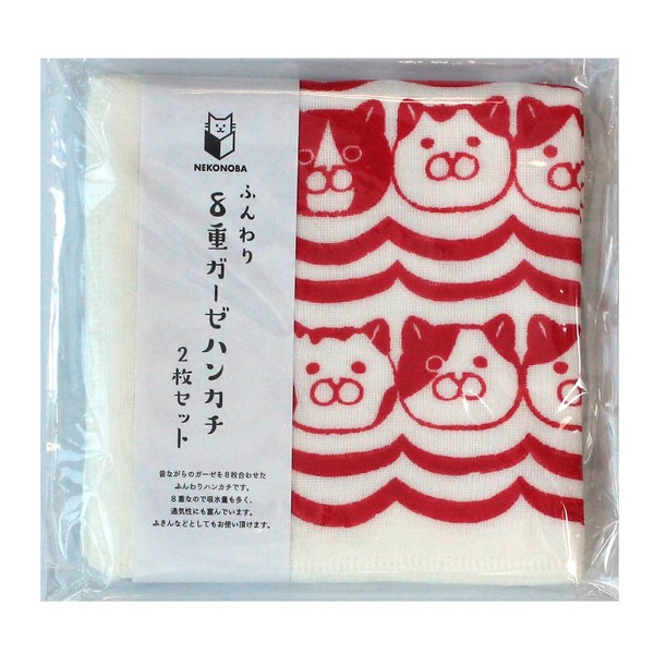 NEKONOBA Fluffy 8-ply Gauze Handkerchief, Set of 2, Wave Cat