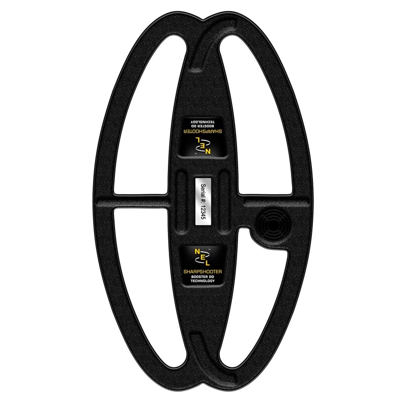 - The Sharpshooter Coil is 9.5" long x 5.5" wide and designed to search areas heavily littered with iron and other trash debris. The shape of the coil helps to separate nonferrous metal from iron. The coil is light and weighs in at 12.3 Ounces, 350 Grams with coil cover.