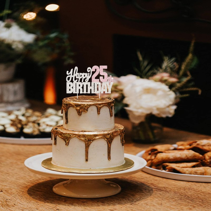 - 【Tamaño del producto】: 15 cm de ancho y 18 cm de alto (con palo), hermosos diamantes de imitación brillantes, la decoración para tarta de cumpleaños 25 realmente destacará en tu día especial