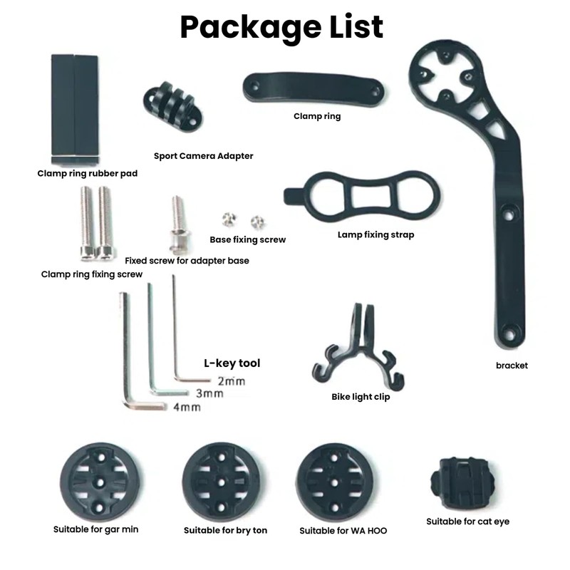 • Designed to work with gar min, bry ton, and wa hoo GPS bike computers through specialized mounting bases included in the kit