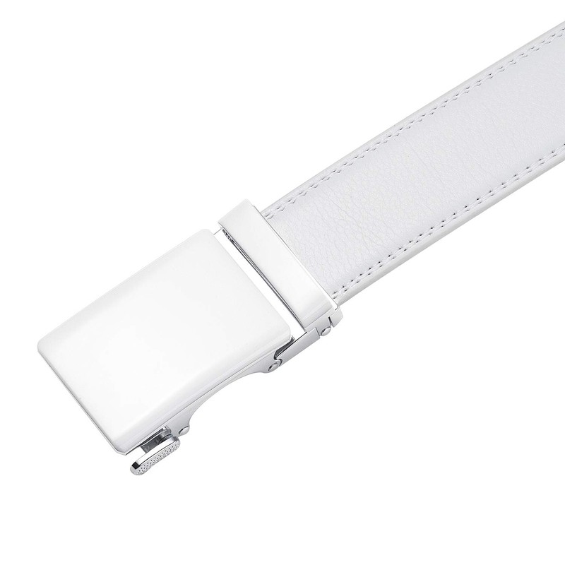 Nelbons Men's Belt, Slide Ratchet Belt for Men with Leather 1 3/8“ width 35mm,Trim to Fit (Y-white 01, 130cm / 28 "-44" adjustable waist)