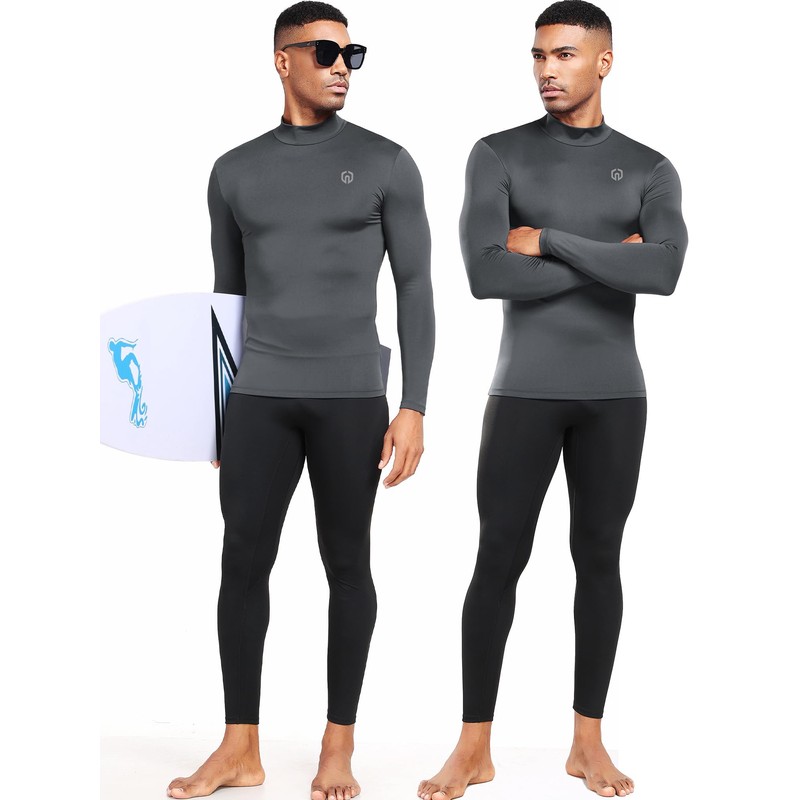 NELEUS 4 Pack Men's Workout Shirts Compression Dry Fit Long Sleeve Shirts,Mock Neck,5024,Black,Grey,Navy,White,US M