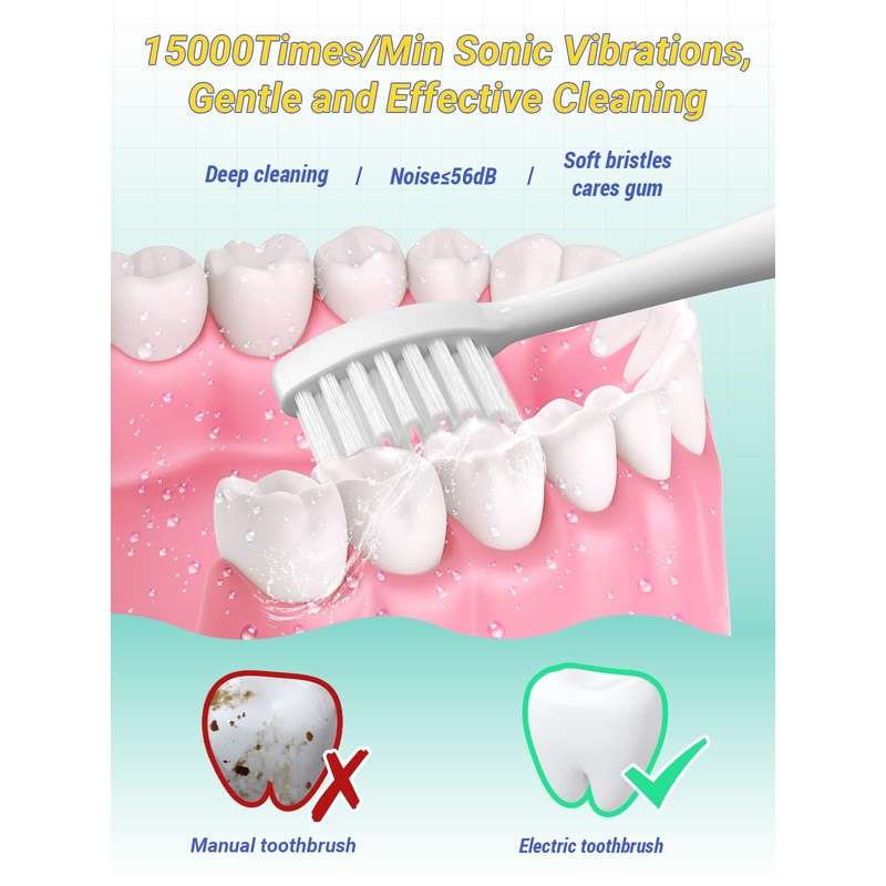 - [High-Efficiency Sonic Toothbrush] Speed up to 15000 brush movement/min, it's 75% more effective than manual toothbrushes in hard to reach areas. It’s easier to get kids to brush longer and better