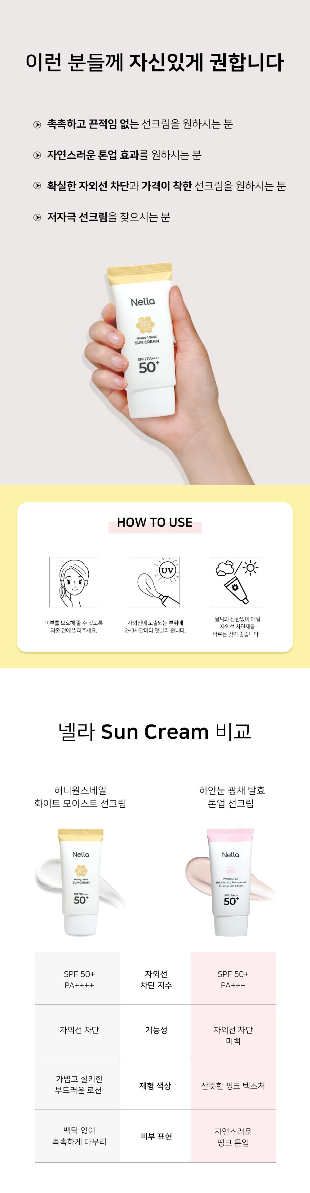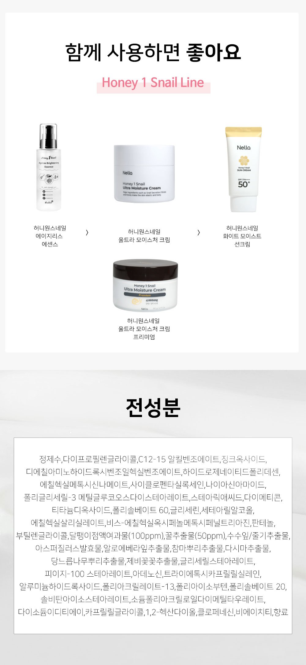 Nella 허니원스네일 달팽이크림 2개+화이트닝 선크림 Honey Source Snail Slug Cream 2 Pieces + Whitening Sunscreen