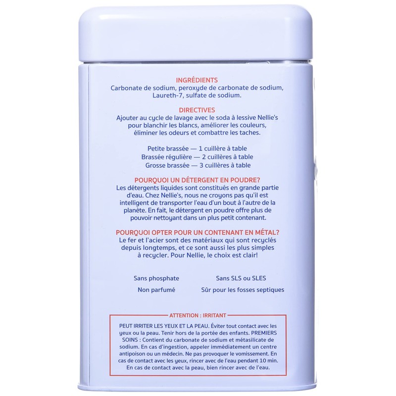 - How to Use: For Machine Wash: small loads – 1 tablespoon; regular loads – 2 tablespoons; large loads – 3 tablespoons. Use 3 tablespoons for very dirty or stained clothing. // For Pre-Soak or Hand Wash: Separate whites from colors. Use only one tablespoon along with Nellie’s Laundry Soda in 10 L (2.6 gallons) of WARM or HOT water. Soak for 1/2 hour then rinse thoroughly.