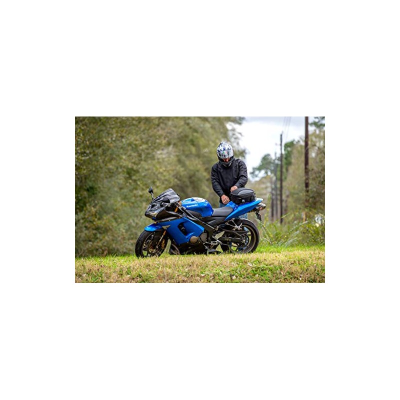 Industry leading UltraMax fabric that offers maximum fade resistance and prevention of break down from the natural elements. Perfect size for a day's traveling. Easily mounts to most tail sections and seats. Mounting with quick release buckles. Molded EVA lid with Fibertech carbon-like accents. Bag maintains shape, has reflective piping and a lined interior Lockable reverse coil zippers and hi-density rubber zipper pullers. Inside self-fastening straps to better secure contents. Flush mount reflective handle and mesh organizer under lid. 100% waterproof rain cover and adjustable shoulder strap. Fully expandable with a protective base material. Main compartment measures: 13L x 11W x 7H Standard / 13L x 11W x 9.5H Expanded Holds 16.41 Liters / 22.26 Liters expanded